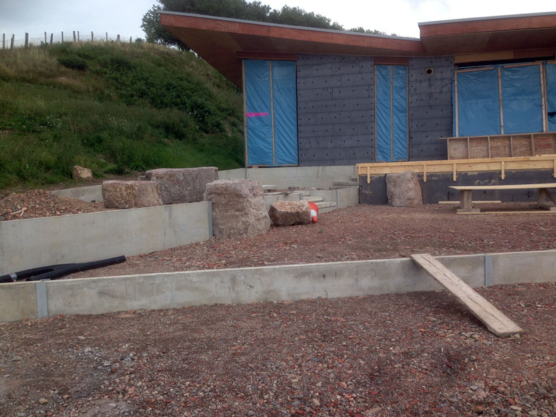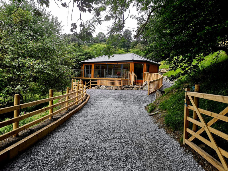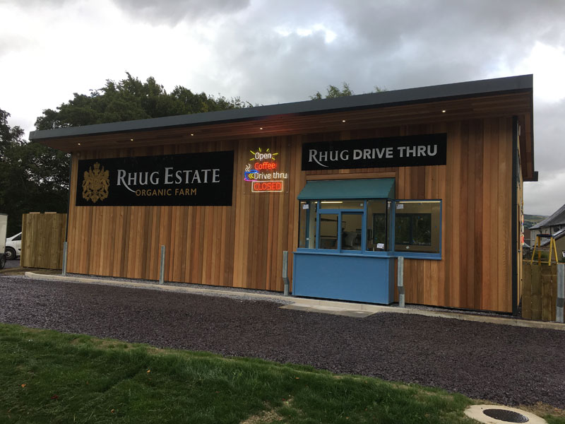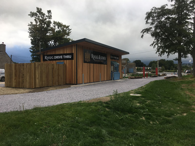 We were commissioned by Lord Newborough to build the first Farm Drive Thru in the UK. We completed extensive groundworks, installed all utilities, surface water drainage and foul water drainage, including a new sewerage treatment plant to service the site. We formed a road and car parking areas, finished with coloured stone and landscaped the embankments. We installed steel bollards and kerbs, and laid block paving for disabled parking. We excavated and installed foundations ready for installing the steel framed building. We then roofed, timber panelled, clad with cedar and insulated the building.