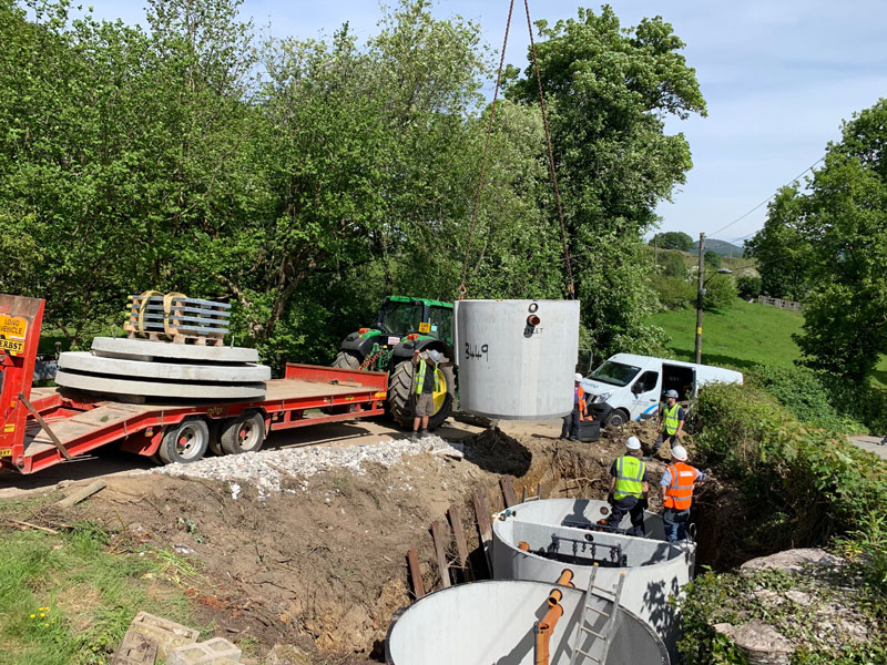 We have carried out extensive groundworks to upgrade the services at a popular caravan park in Llandrillo. We excavated and installed a new mains sewer down the centre of the park, with manholes spurred off in preparation for new static caravan bases. We excavated and installed ducts for electric, gas, data and a new water main. We excavated and installed concrete bases to site the new static caravans.
